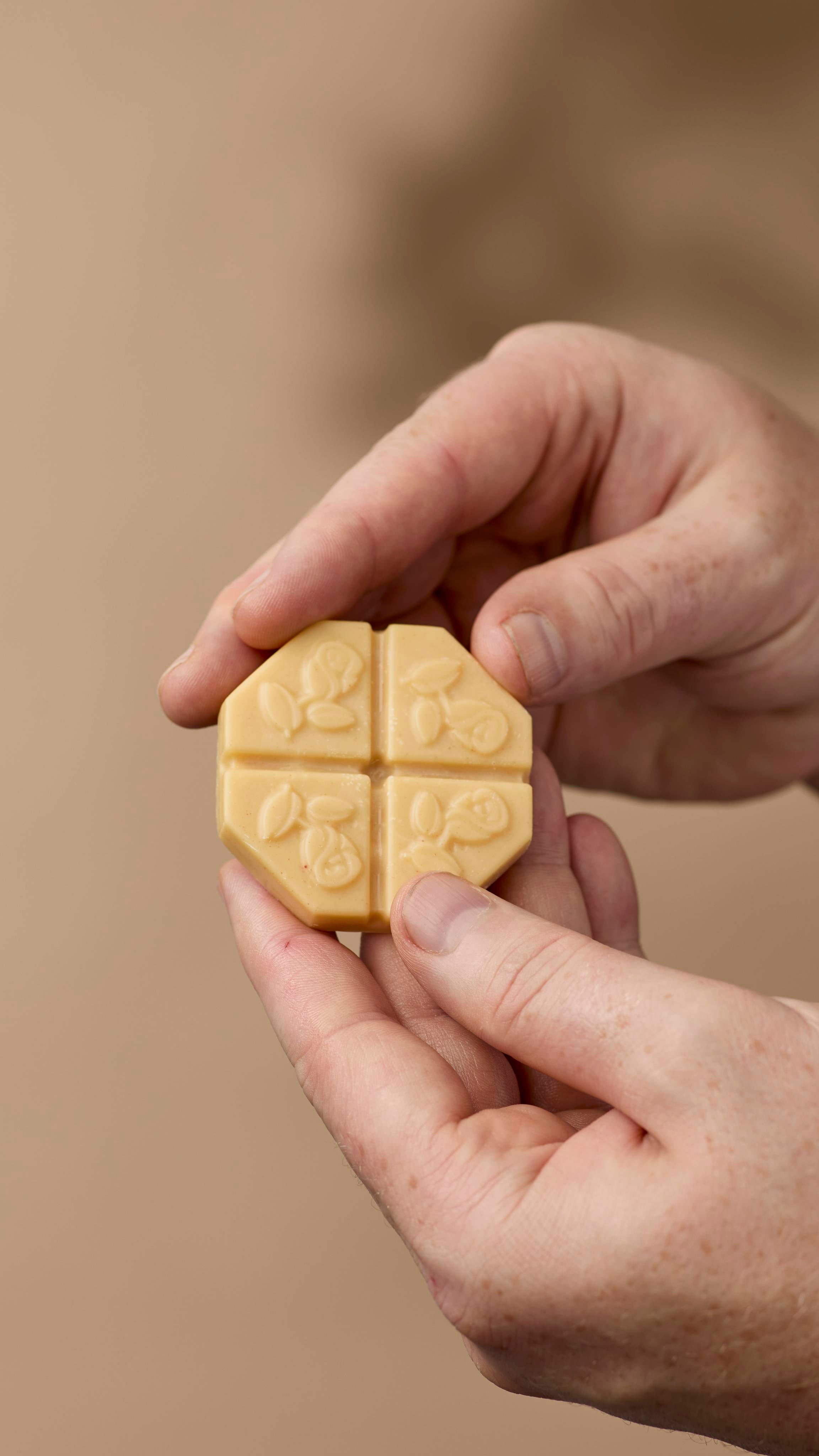 How to use: Perfect for nighttime use, our snappable, new-look, solid face oil is now the perfect shape for a relaxing facial massage. Break off a segment and sweep across the brow bone and up over the cheekbones, allowing the warmth of your skin to gently melt the butters and oils. Work in with clean fingers using upward strokes to encourage a natural glow and promote a lifted look.