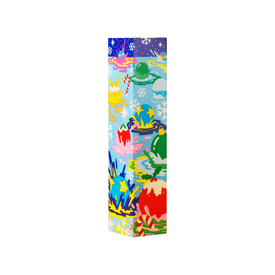This reusable gift box fits up to five bath bombs and is designed by Tim Lahan, a graphic artist based in San Francisco who works to question the limits of reality and distill the complexities of everyday life in simple terms. His design takes a psychedelic approach to the bath bombs by having them fall from the sky like lost planets colliding and melting into the water below.
