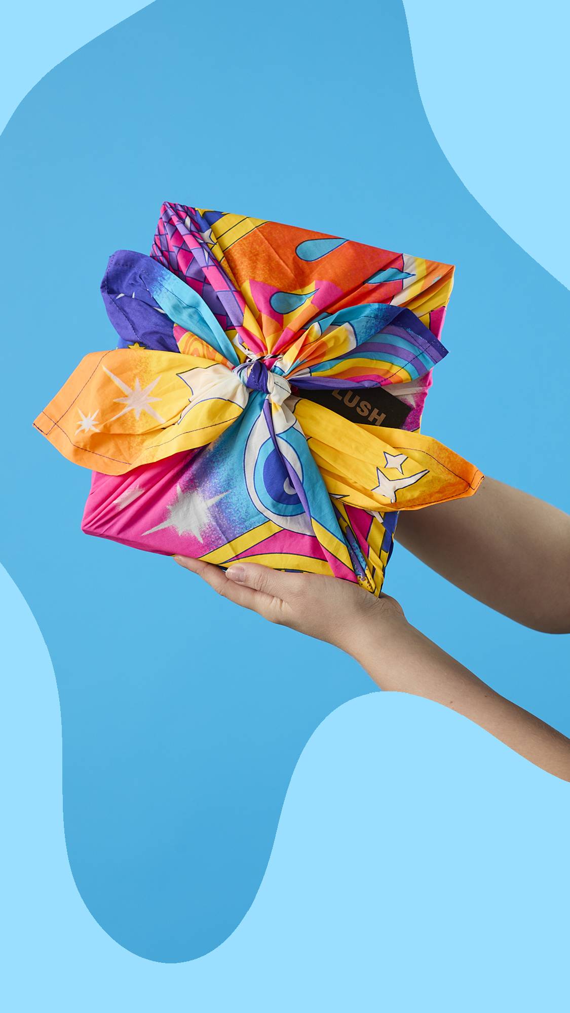 Lush Knot Wraps are a reusable and easy-peasy wrapping alternative to gift papers, made from either organic cotton or recycled polyester. They come in a variety of colors, designs and sizes! Ditch disposable paper for good and wrap up your gifts and naked products again and again with our reusable, vibrant and fun Knot Wraps.