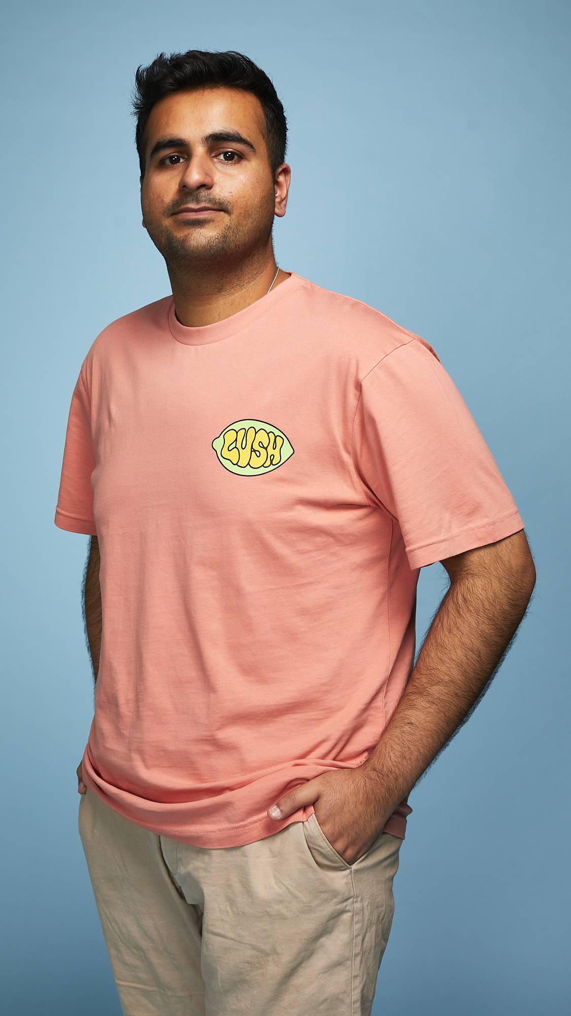 Fresh ingredients are intrinsic to Lush. Join us in a colorful celebration of this core Lush value at the heart of our philosophy while you stay cool in coral with this 100% organic cotton tee. The print was designed in collaboration with an artist local to the U.K., Dorset and features a small front pocket print and a larger print on the back.