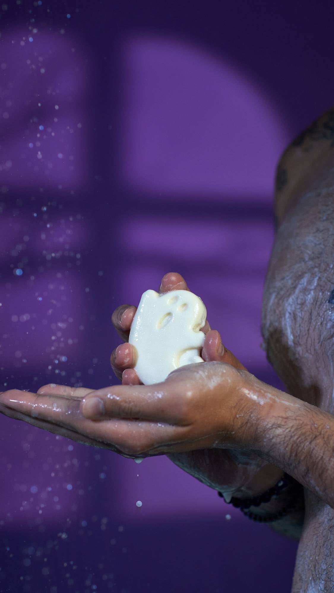 Scare away dirt with this Halloween sudser. This citrus-sweet lemongrass and bergamot-scented soapy ghost keeps your corporeal form in nice and clean condition. No need to worry about losing this bar in the bathroom either — it glows in the dark!