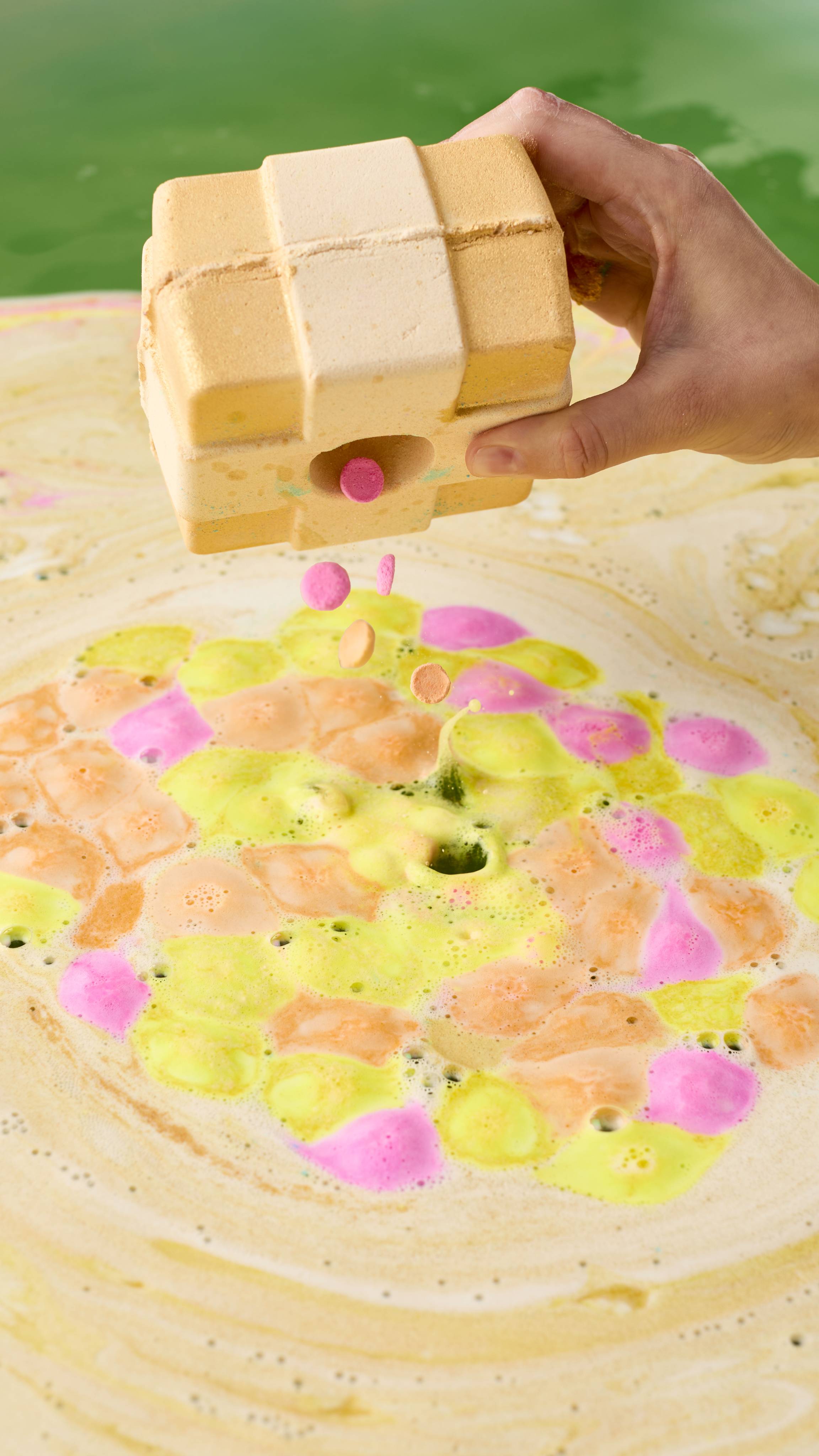 - Known for its energizing scent, lime oil brings out the bright citrus character of this bath bomb.