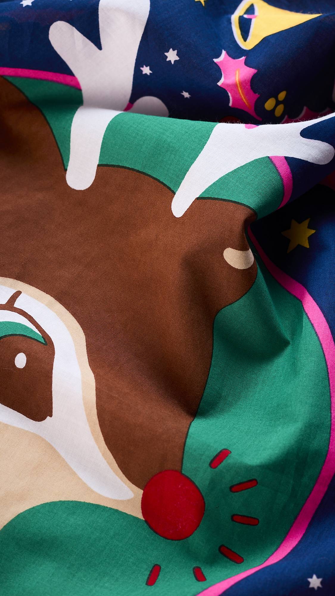 "The symmetrical, mandala style design was inspired by the cheerful Polish folk art which adorned the walls of my grandparents' house when I was a child. The beautiful retro deer steals the show, reminding us of all things Christmas past."