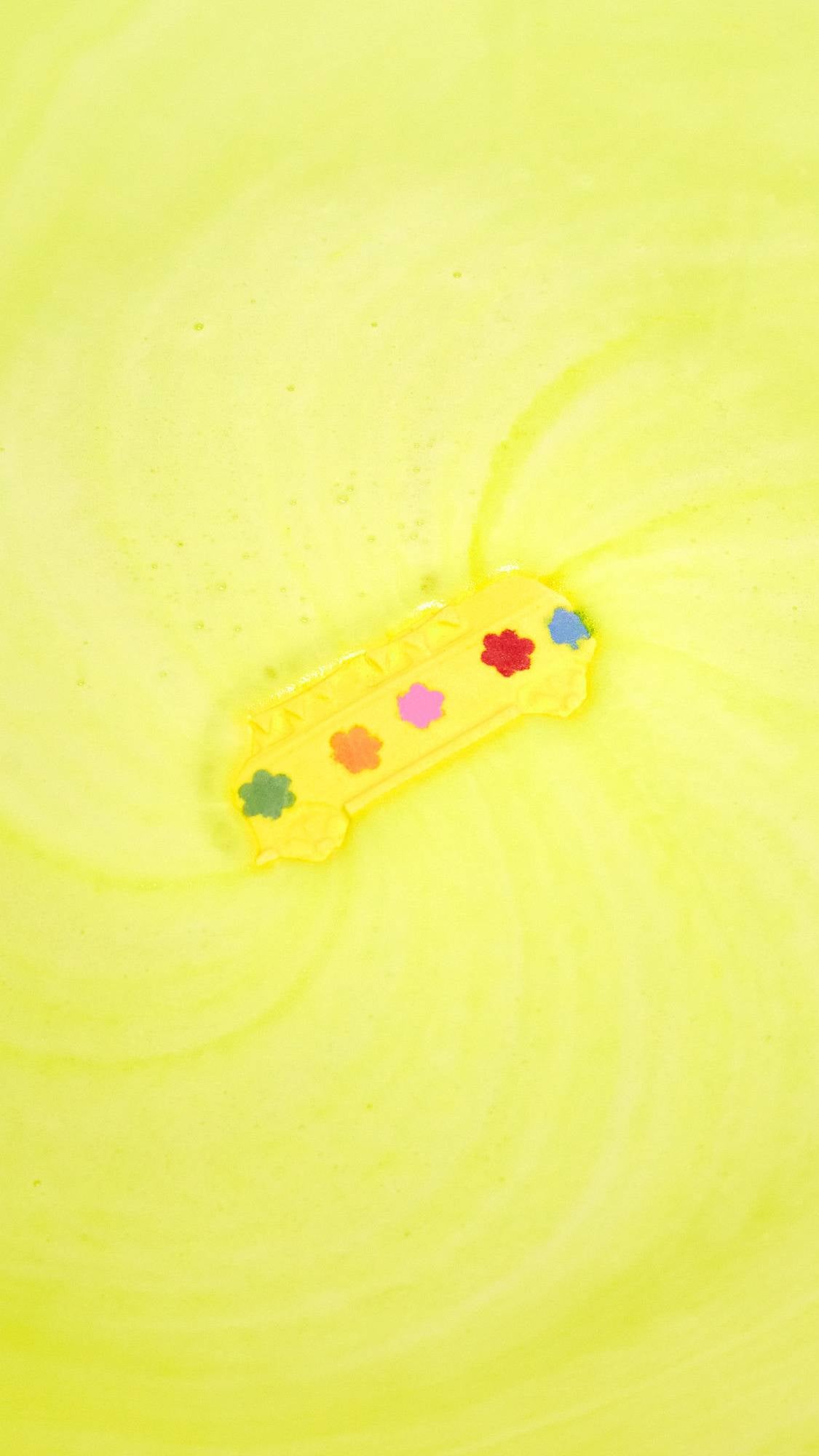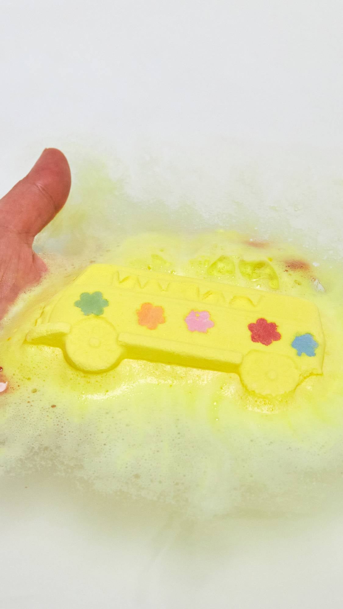 When the world's getting you down, hop in the tub with our Magic Bus and feel the flower power! We're sure you'll dig the piña colada-inspired party scent, while the hippie palette creates a far-out explosion of color in the water. Inside the bus, lemongrass oil tones your skin while vitamin E-rich argan oil leaves you feeling soft and smooth. Coriander seed oil is mixed in too, which can help your body feel soothed and warm.
