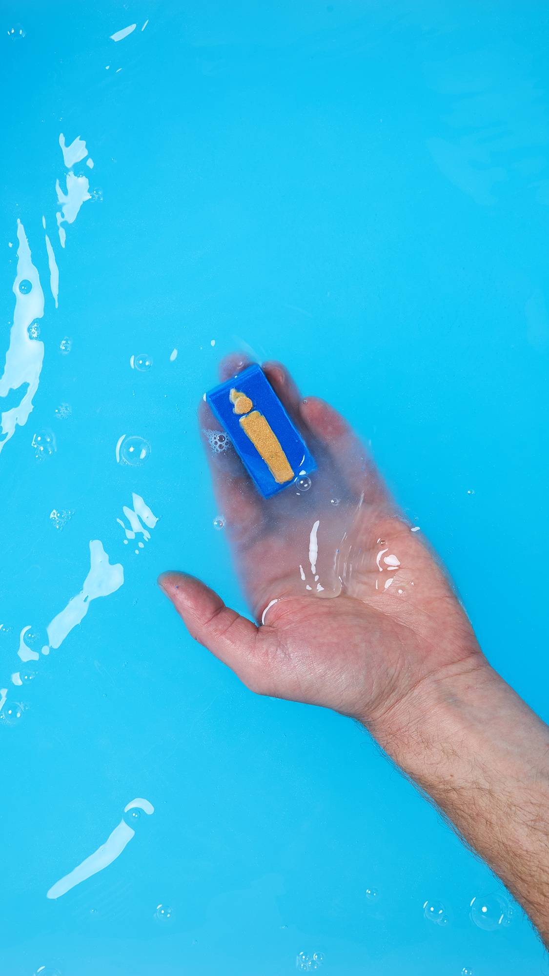 Break off one or two squares, drop them into a warm bath and let them melt.