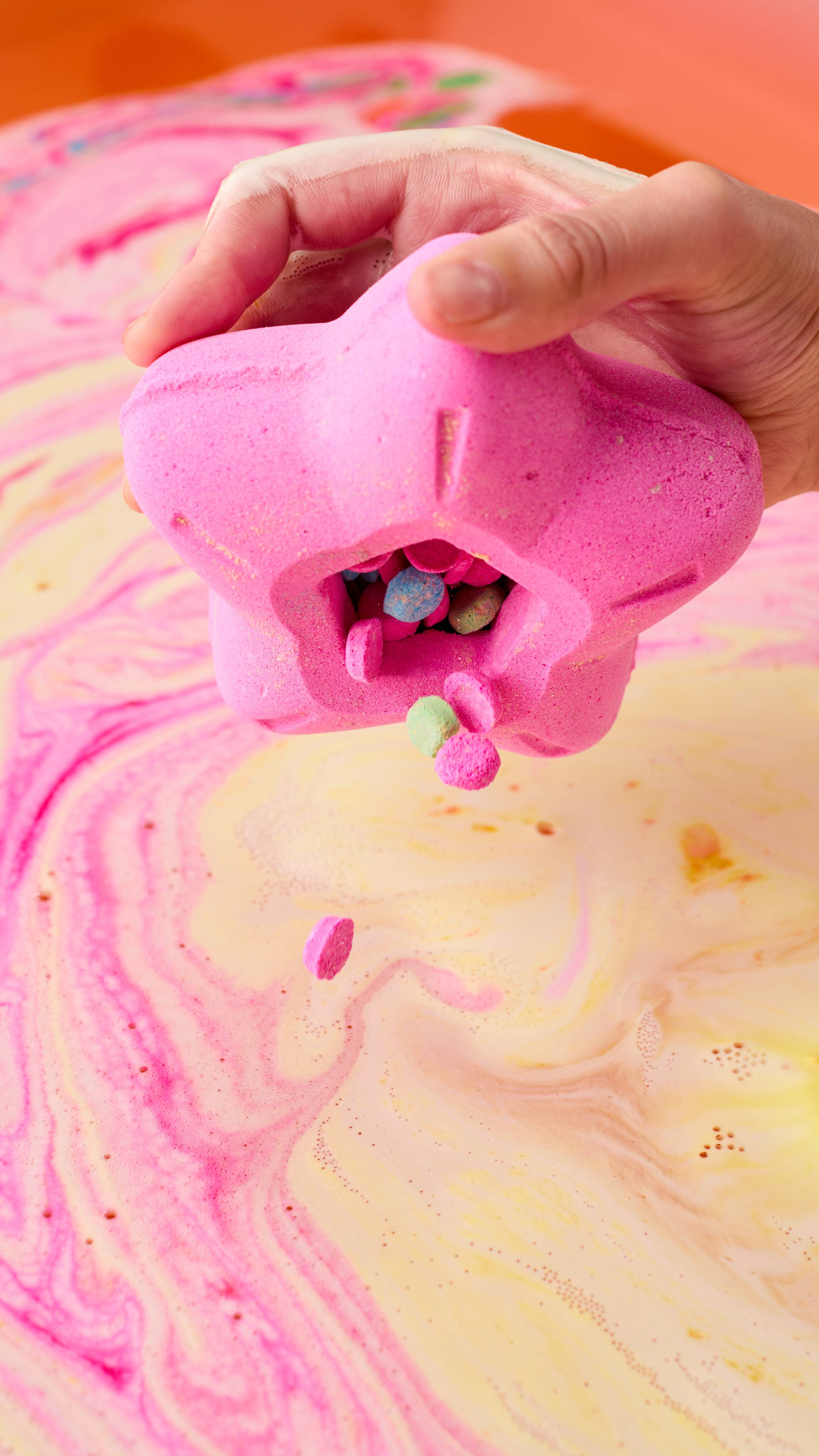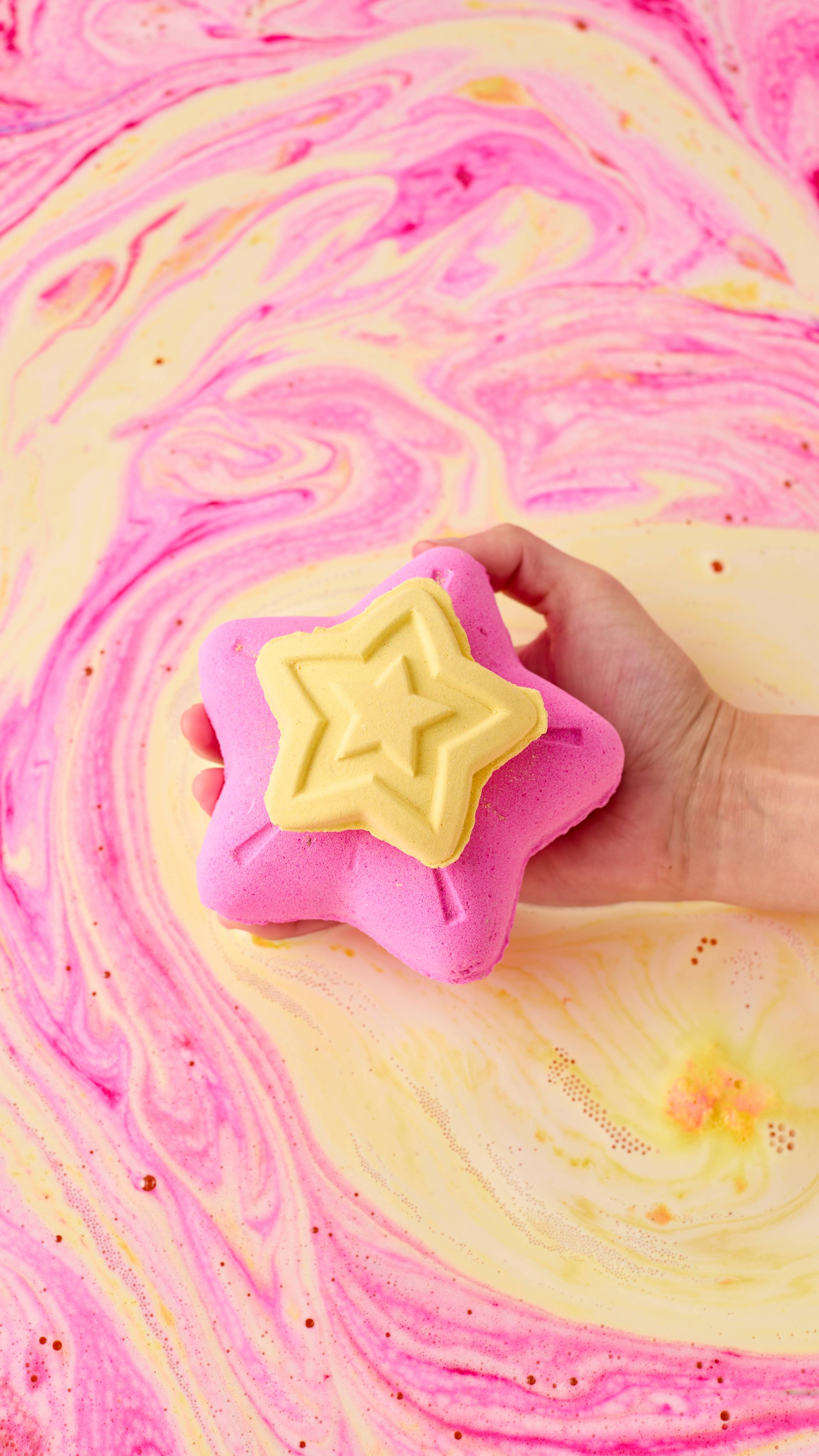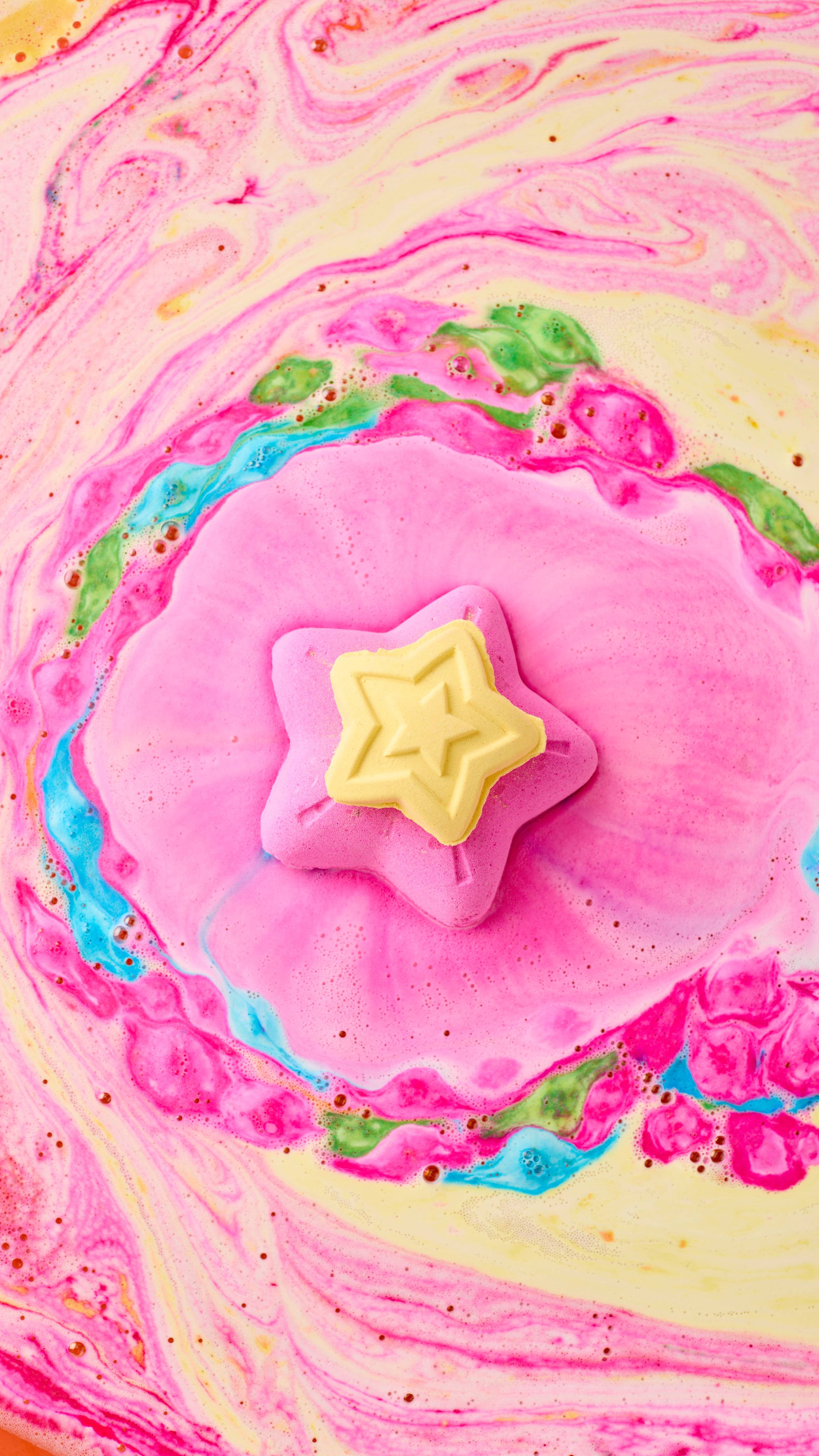 More is more is more! Float away on a sea of sweet and sparkly fizz, packed with our beloved cotton candy scent. This Snow Fairy-scented sparkler can be used all at once. The big star froths into neon-pink waters while the star-shaped lid creates yellow swirls. Inside, there's bath bomb confetti that'll turn your tub into a sea of floating fairy lights. Indulge in the sweetness that comes but once a year ...