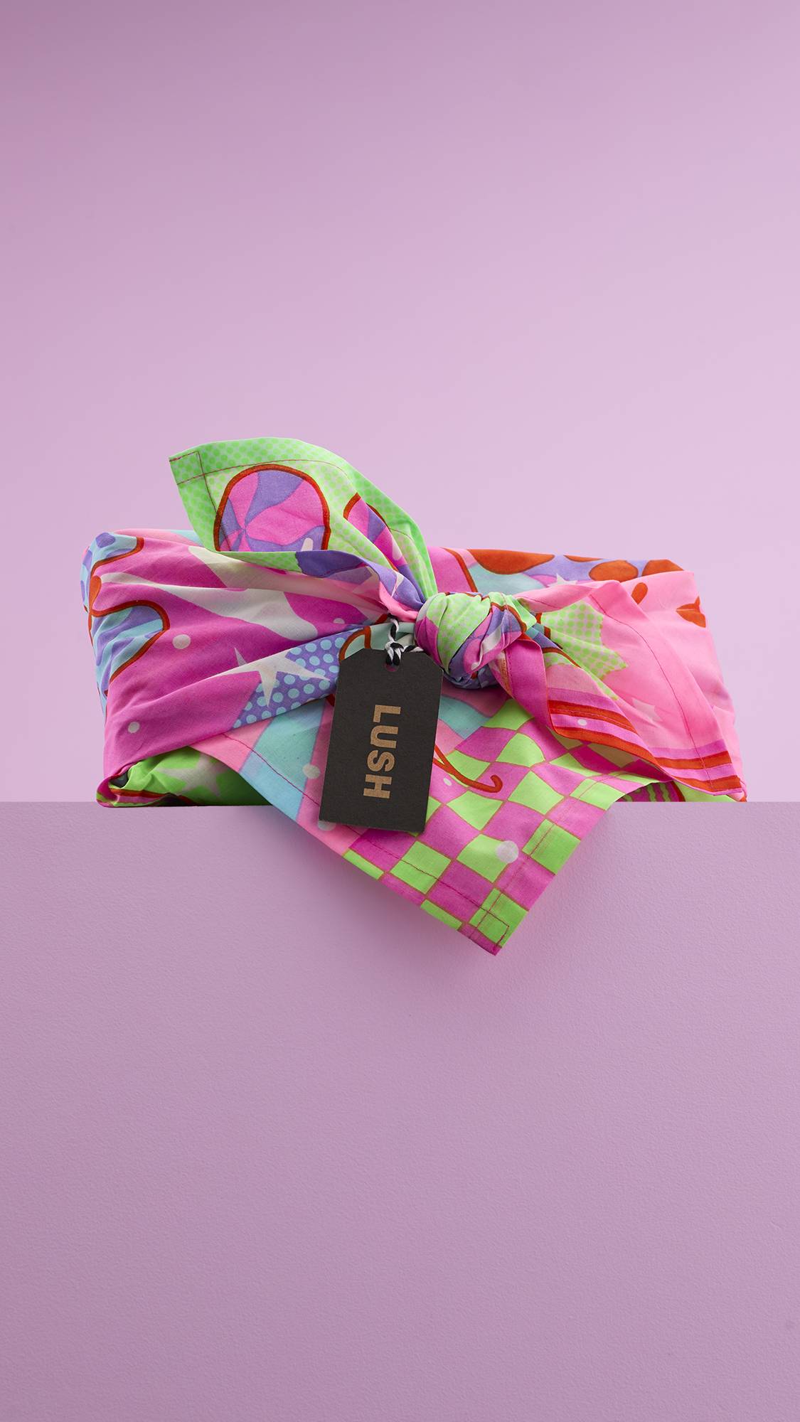 Lush Knot Wraps are a reusable and easy-peasy wrapping alternative to gift papers, made from either organic cotton or recycled polyester. They come in a variety of colors, designs and sizes! Ditch disposable paper for good and wrap up your gifts and naked products again and again with our reusable, vibrant and fun Knot Wraps.