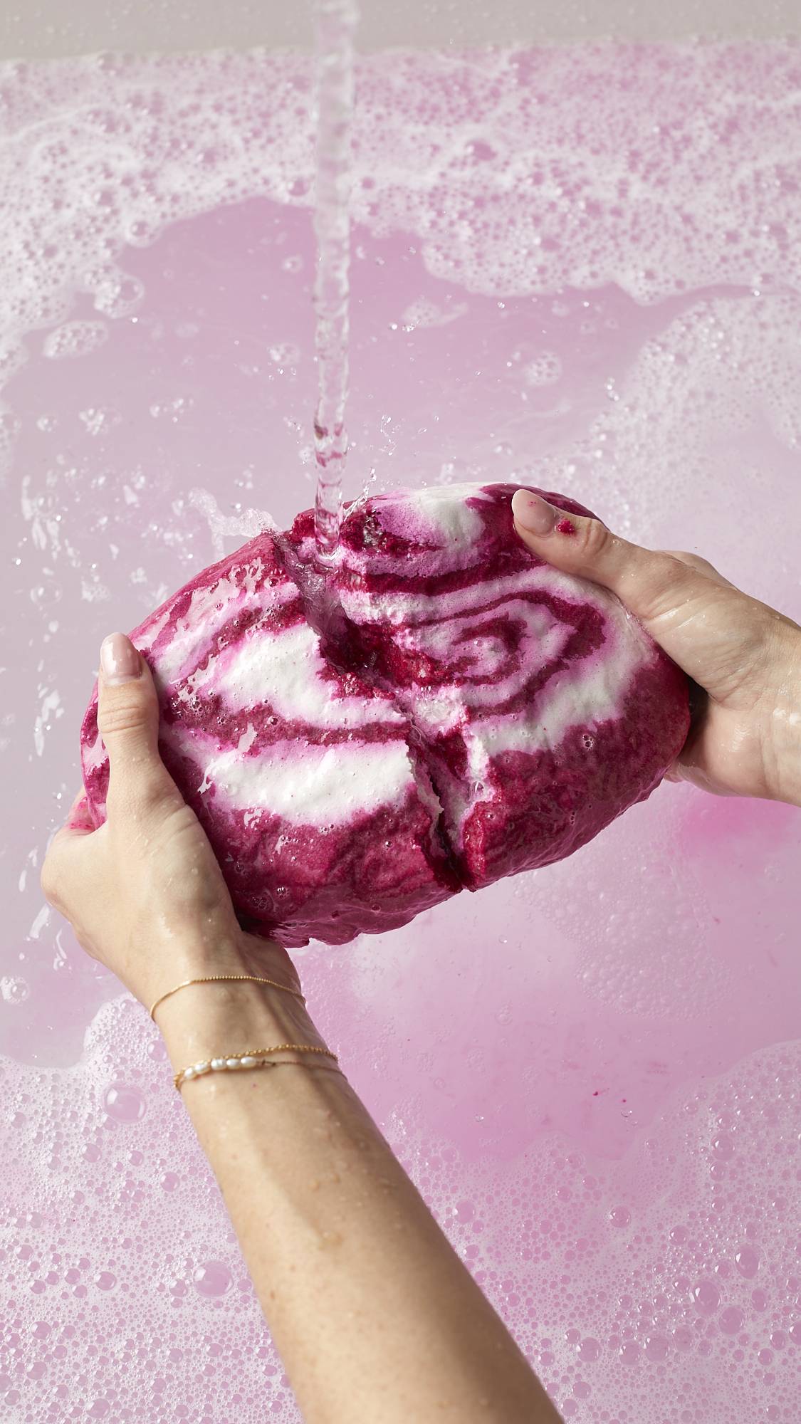 How to use: Crumble a piece under running warm water for berry sweet baths full of beautiful bubbles. Relax, then rinse off.