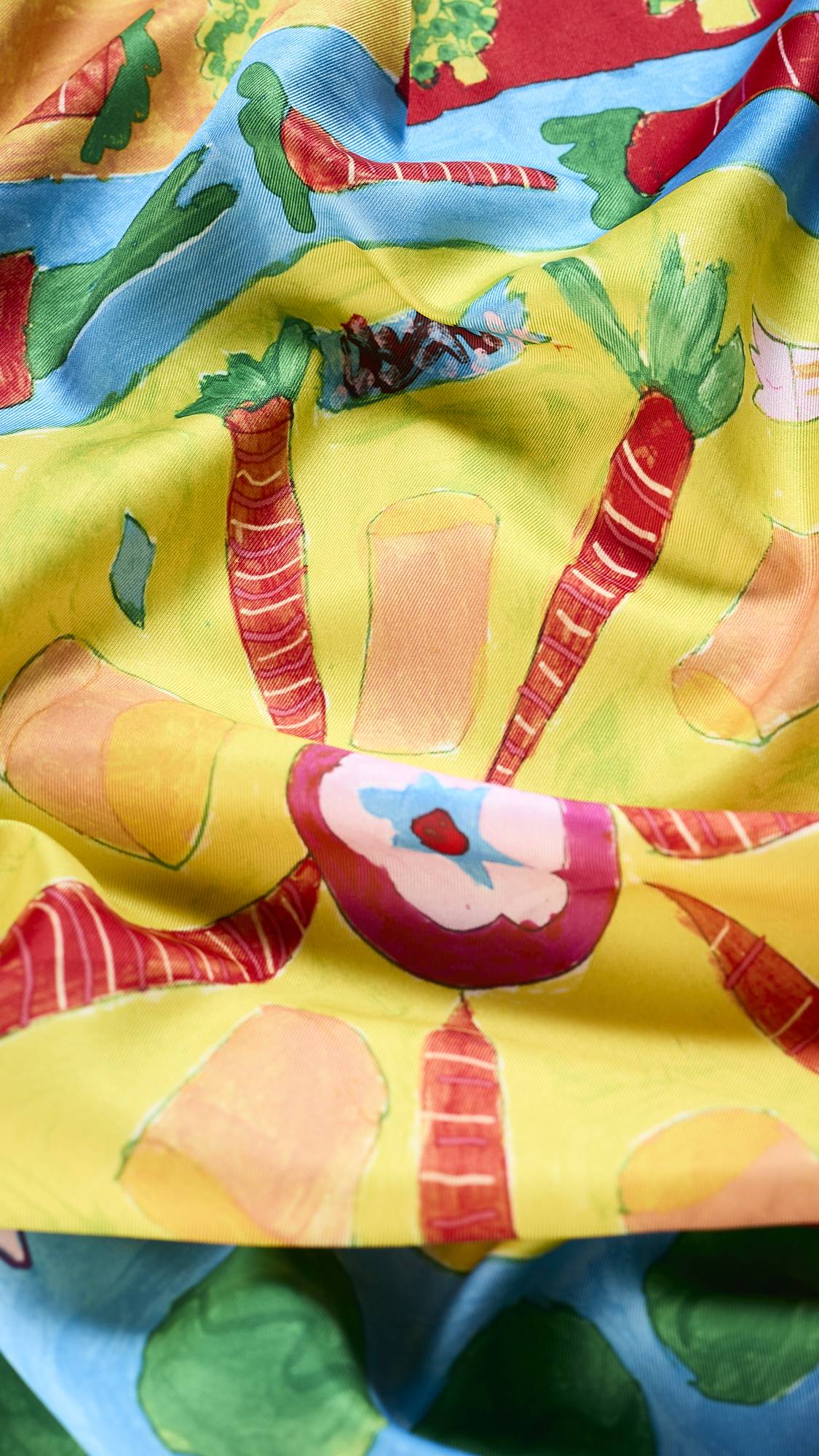 This Knot Wrap is 100% recycled polyester made from recycled plastic bottles. The bottles are collected to GRS (Global Recycled Standard) and are washed, spun and chipped. These chips are melted and go through a fine spinneret, which extrudes the plastic into yarn. The fabric is then printed using heat transfer method, achieving lots of detail and painterly effects. Once printed, it is sewn and finished in Anhui Province, China.