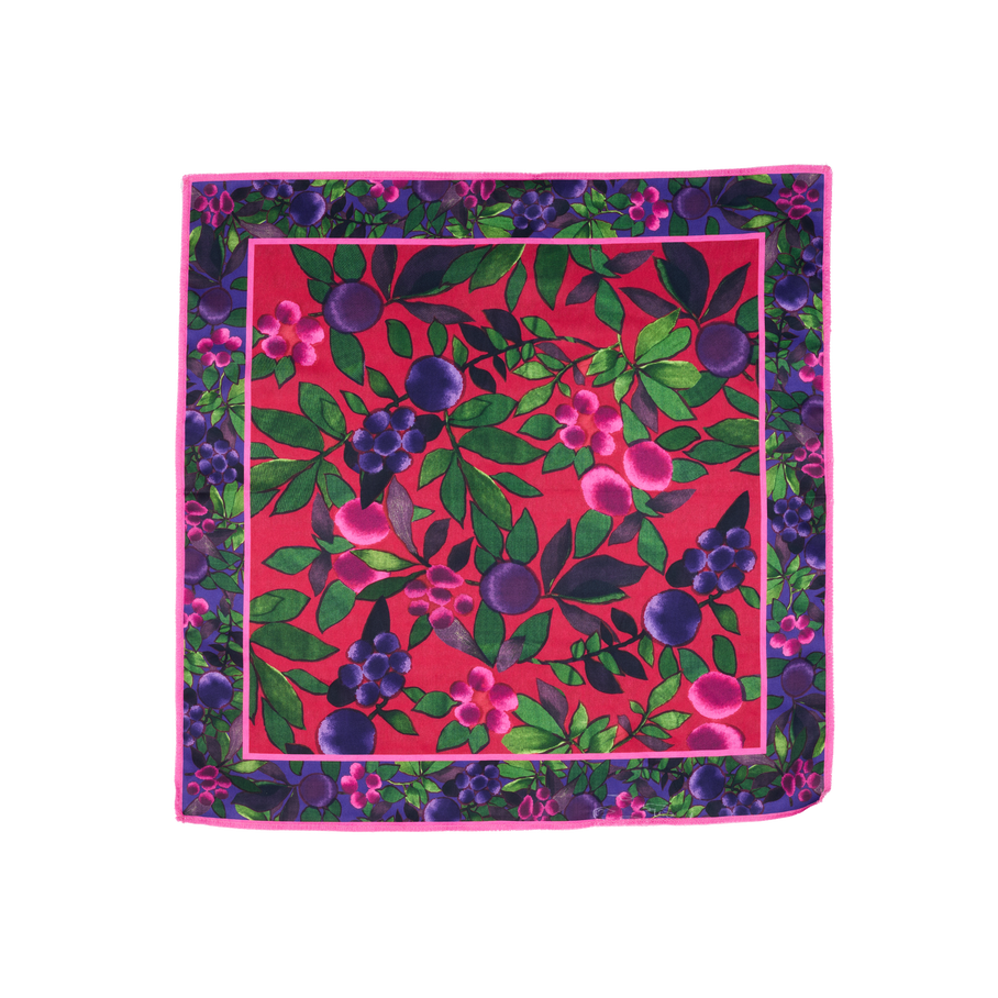 This Knot Wrap is 100% recycled polyester made from recycled plastic bottles. The bottles are collected to GRS (Global Recycled Standard) and are washed, spun and chipped. These chips are melted and go through a fine spinneret, which extrudes the plastic into yarn. The fabric is then printed using heat transfer method, achieving lots of detail and painterly effects. Once printed, it is sewn and finished in Anhui Province, China.